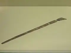 The Arcisate Treasure is composed of five objects, all made of silver. They include a jug, a cup (both handles of which are now missing), a strainer, a ladle and a spatula. The whole set would have been used for the mixing and serving of wine, either for dining or for religious ceremonies. Various inscriptions indicate the treasure's previous owners - on the jug's base is inscribed "Utia T(iti) f(ilia) p(ondo)", which can be translated as 'Utia daughter of Titus'. The ladle is engraved with the following letters in Latin: "T. Uti V(ibi) f(ili) p(ondo) III sc(ripula) IV", which can be interpreted as 'This ladle is the property of Titus Utius, son of Vibius, weighs three Roman pounds and four ounces'. Titus Utius was probably a Roman citizen, and father of Utia, who is referred to on the jug.