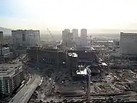 In 2012, a new, larger resort sign was added along Interstate 15, located behind Aria.[137][138] Another sign, created by YESCO, was erected along the Strip in 2013. Standing 250 feet, it is the tallest sign on the Strip. It includes a 10,000 sq ft (930 m2) LED screen with 11 million pixels.[139]