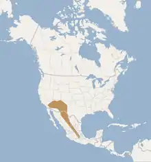 Its range includes parts of the Southwestern United States and the Mexican state of Chihuahua. It is found in a range of elevations from near sea level to 2,806 m (9,206 ft) above sea level.[1]