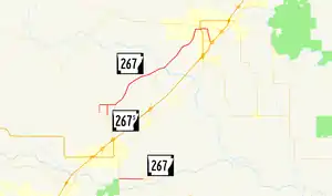 Highway 267 (AR 267, Ark. 267, and Hwy. 267) is a designation for two state highways in White County. One route of 15.47 miles (24.90 km) begins at Highway 31 and runs northeast to Highway 367 in Searcy. A second route of 2.25 miles (3.62 km) begins at Highway 31 and runs east to Highway 13. Highway 267 Spur, a spur route of 0.90 miles (1.45 km) connects Highway 267 and Highway 31 north of Beebe. The highways are maintained by the Arkansas Department of Transportation (ARDOT).