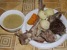 Khorkhog, a Mongolian meat stew, served as a special meal for guests.