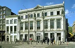 Arti et Amicitiae is also the name of the building. The complex was merged from two separate buildings and given a white neo-classical facade by J. H. Leliman in 1855.