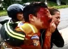 The police officers Javier Blanco and Hanry Ramírez were detained for the attack, and also for hitting another youth of 14 years at the protest.[5] Though the charges are for inflicting head injuries to three young people, Chacón is the one highlighted in media surrounding the trial.[6]