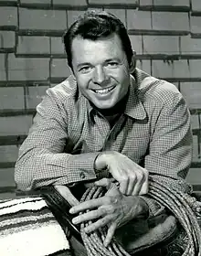 Although Murphy was initially reluctant to appear as himself in To Hell and Back, the 1955 adaptation of his book directed by Jesse Hibbs, he eventually agreed;[142] it became the biggest hit in the history of Universal Studios at the time.[143][144] To help publicize the release of the film, he made guest appearances on television shows such as What's My Line?,[ALM 8] Toast of the Town,[145] and Colgate Comedy Hour.[ALM 9] The Hibbs-Murphy team proved so successful in To Hell and Back[146] that the two worked together on five subsequent films. The partnership resulted in Murphy appearing as John Phillip Clum in the 1956 western Walk the Proud Land,[147] and the non-westerns Joe Butterfly[148] and World in My Corner. They worked together for the last time in the 1958 western Ride a Crooked Trail.[149]