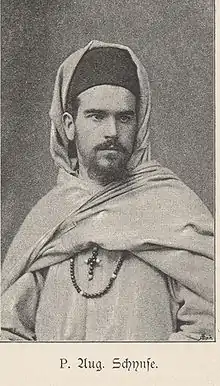 August Schynse (1857–1891) was a German Catholic missionary and African explorer born at Wallhausen, near Kreuznach, and educated at Bonn. He attended the seminary at Speyer, became a priest in 1880, and in 1882 entered the service of the African Missions (Fathers of the Missions d'Afrique or White Fathers) and was active in work in French Algeria. He was part of an expedition to the Congo in 1885. In 1888 he made a trip to East Africa and from there accompanied Stanley and Emin Pasha to the coast. With Emin he went to the Victoria Nyanza, and then spent almost a year in explorations between that lake and Uganda. He wrote: Zwei Jahre am Kongo (1889) and Mit Stanley und Emin Pascha durch Deutsch Ost-Afrika (1890).