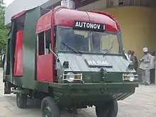 He tinkered further with motor engines when he acquired an army-type jeep and proceeded to invent a second steering-wheel mechanism adjoined to the pre-existing engine at the rear end so that the vehicle could move forward and backwards with all four pre-existing gears.[15] This gave the hybrid vehicle, which he christened Autonov 1, the ability to achieve its highest speeds at a moment's notice, in the normal reverse direction. He highlighted the advantage this might offer to army vehicles, as an example, that might need to make a fast retreat, in a cul-de-sac or ambush situation.[16]
