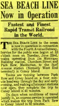 - "The Sea Beach Railroad". Brooklyn Daily Eagle. Brooklyn, NY. July 19, 1877. p. 2.
