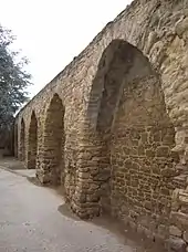 - Saint Kilian's Monastery (Kloster St. Kilian; old parish church; monastery's nature unclear), in the Osterburg (old Roman castrum, Charlemagne's palace) on the Heidenmauer ("Heathen Wall") built on the site of the Constantinian Saint Martin's Church (St. Martins-Kirche), first mentioned about 741 and destroyed by the Normans about 891,[34] tied with a hospital in 1310; in the 14th century there was a Beguine cell with prayer house; the monastery was torn down about 1590. The patrocinia of Saint Martin and Saint Kilian were then added to Saint Mary's Church on the ait.