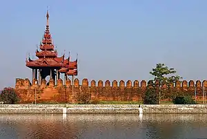 Evidence shows that the actual pace of Burman migration into the Pyu realm was gradual. Indeed, no firm indications have been found at Sri Ksetra or at any other Pyu site to suggest a violent overthrow. Radiocarbon dating shows that human activity existed until c. 870 at Halin, the Pyu city reportedly destroyed by an 832 Nanzhao raid.[26] The region of Pagan received waves of Burman settlements in the mid-to-late 9th century, and perhaps well into the 10th century. Though Hmannan states that Pagan was fortified in 849—or more accurately, 876 after the Hmannan dates are adjusted to King Anawrahta's inscriptionally verified accession date of 1044—the chronicle reported date is likely the date of foundation, not fortification. Radiocarbon dating of Pagan's walls points to c. 980 at the earliest.[27] (If an earlier fortification did exist, it must have been constructed using less durable materials such as mud.) Likewise, inscriptional evidence of the earliest Pagan kings points to 956. The earliest mention of Pagan in external sources occurs in Song Chinese records, which report that envoys from Pagan visited the Song capital Bianjing in 1004. Mon inscriptions first mentioned Pagan in 1093, respectively.[28][29]