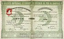 After the line to Ankara was completed during December 1892, railway workshops were built in Eskişehir and permission was obtained to construct a railway line from Eskişehir to Konya; that line was completed in July 1896.[16] These two lines were the first two sections of the Baghdad railway. Another railway built at the same time by German engineers was the Hejaz railway, commissioned by Sultan Hamid II.