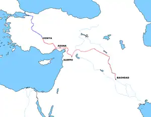 The Mersin–Yenice–Adana line existed prior to the construction of the Bagdad railway and was used for the latter in its Yenice–Adana section.[22]