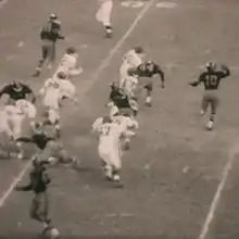By 1940, Lawrence's teams were undefeated in 38 consecutive games, won three consecutive state titles and retired the trophy presented by the Evening Sun for the winner of the City-Poly game.[11] In 1941, an undefeated City College went to Florida, to play Miami High School in the Orange Bowl stadium. The Knights, used to playing in cool autumnal or cold winter weather, lost to Miami High with the temperature exceeding 90 °F.[12] After the season, Lawrence and his long-time assistant, Otts Helms joined the war effort; Helms was a captain in the Army and Lawrence served as a lieutenant in the Navy for the remainder of World War II. In 1947, Lawrence became the head coach at Bucknell University where future City College head football coach, George Young, played for him in the early 1950s.[13]