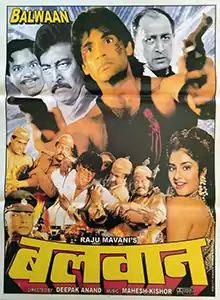 Balwaan (transl. Mighty) is a 1992 Indian Hindi-language action film directed by Deepak Anand and produced by Raju Mavani. The film stars Sunil Shetty in lead (his debut) role, with Divya Bharti, Tinu Anand, Danny Denzongpa in pivotal roles.[1][2]