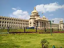 The central business district of Bangalore is the area within a 6 km radius around Vidhan Soudha. This is the center of the city and core commercial area of Bangalore which was founded by Kempegowda of the Vijayanagara Empire. Most of the land is used by commercial establishments and the Indian Army with plans of skyscrapers under works. It has multiple high-rises including World Trade Center Bangalore and UB Tower. It also includes heritage properties like the Bangalore Fort and the Bangalore Pete.