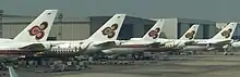 A line-up of Thai Airways International aircraft at Don Muang before their relocation to Suvarnabhumi Airport.