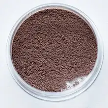 Barium ferrate is then precipitated from solution by adding a solution of a barium(II) salt.[11] Addition of a soluble barium salt to an alkali metal ferrate solution produces a maroon precipitate of barium ferrate, a crystal which has the same structure as barium chromate and has approximately the same solubility.[12] Barium ferrate has also been prepared by adding barium oxide to a mixture sodium hypochlorite and ferric nitrate at room temperature (or 0 °C).[13] The purity of the product can be improved by carrying out the reaction at low temperature in the absence of carbon dioxide and by rapidly filtering and drying the precipitate, reducing the coprecipitation of barium hydroxide and barium carbonate as impurities.[12]