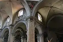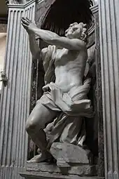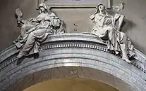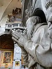 One of the most important Mannerist funeral monuments in the basilica is the tomb of Cardinal Gian Girolamo Albani, an influential politician, jurist, scholar and diplomat in the papal court in the last decades of the 16th century. He died in 1591. The Late Renaissance monument is one of the main works of the Roman sculptor, Giovanni Antonio Paracca. The bust of the Cardinal is a realistic portrait of the old statesman. He is seen praying with his head turned toward the main altar. Facing this monument the cenotaph of Cardinal Giovanni Battista Pallavicino (1596) is likewise attributed to Paracca.
