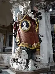 In his bull Dum praecelsa Pope Boniface IX on 30 August 1400 granted a special indulgence to those who offered alms for the construction of a new tabernacle above the miraculous image of the Virgin. A marble relief depicting the Coronation of the Virgin (now preserved in the sacristy corridor) could have been part of a Gothic ciborium or cella built for the icon after that papal concession.[16]
