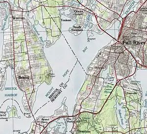 The Mount Hope Bay raids were a series of military raids conducted by British troops during the American Revolutionary War against communities on the shores of Mount Hope Bay on May 25 and 31, 1778. The towns of Bristol and Warren, Rhode Island were significantly damaged, and Freetown, Massachusetts (present-day Fall River) was also attacked, although its militia resisted British attacks more successfully. The British destroyed military defenses in the area, including supplies that had been cached by the Continental Army in anticipation of an assault on British-occupied Newport, Rhode Island. Homes as well as municipal and religious buildings were also destroyed in the raids.