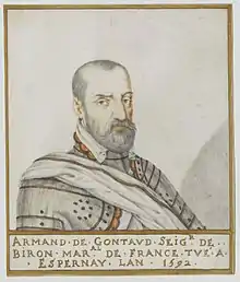 The Battle of Steenbergen, also known as the Capture of Steenbergen of 1583, took place on 17 June 1583 at Steenbergen, Duchy of Brabant, Spanish Netherlands (present-day North Brabant, the Netherlands). This was an important victory for the Spanish Army of Flanders led by Don Alexander Farnese, Prince of Parma (Spanish: Alejandro Farnesio), Governor-General of the Spanish Netherlands, over the French, English, and Dutch forces led by the French Marshal Armand de Gontaut, Baron de Biron, and the English commander Sir John Norreys, during the Eighty Years' War, the Anglo-Spanish War (1585–1604), and in the context of the French Wars of Religion.[1][2] The victory of the Spaniards ended the Treaty of Plessis-les-Tours, and Francis, Duke of Anjou (French: François de France), left the Netherlands in late June.[5][6]