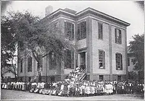 In 1867, the Beach Institute was established by the American Missionary Association (A.M.A.)[4] and the Freedmen's Bureau with funds donated by Alfred Ely Beach, editor of Scientific American. The school was privately funded as a manual training school to provide support for newly freed African Americans.[5][6] By 1874, the institute was appropriated by the Savannah-Chatham Board of Education for the purpose of providing free education to Savannah's African American citizenry. Although the Beach Institute closed its doors in 1915, it was reopened as an African American cultural center and is currently operated by the King-Tisdell Cottage Foundation.