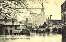 The town has a number of places of worship.[26] St. George's Church is the principal parish church, and is in the centre of Beckenham.[27] It was extensively rebuilt, at the end of the 19th century, but an earlier building dates back to 1100. It has a 13th-century lych gate that is thought to be one of the oldest in England.[5][28] The almshouses next to the church go back to 1694. There are also three other Anglican churches in the town: All Saints Church; Holy Trinity Church; and St James at Elmers End. In addition, there are Methodist and Baptist churches; and the Roman Catholic church dedicated to St Edmund of Canterbury.[29]