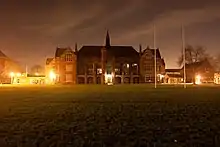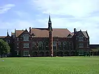 The Main School Building, originally built in 1891, is a Gothic Revival Grade II listed building.[13][14] On the night of 3–4 March 1979, much of the building was gutted by fire as a result of arson. The internal structure of the building was destroyed and thirty classrooms were lost. Almost all pupil records were saved but books, furniture and the large collection of portraits of former headmasters were lost. However, the school was in full operation on Monday 5 March.[15][16]