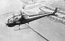 The Bell 207 Sioux Scout is a modified Bell 47 helicopter, developed by Bell Helicopter under contract from the United States Army, as a proof-of-concept demonstrator for the Bell D-255 helicopter gunship design, featuring a tandem cockpit, stub wings, and a chin-mounted gun turret.