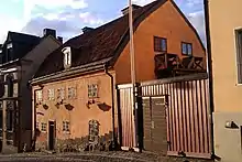 Carl Michael Bellman was born on 4 February 1740 in the Stora Daurerska house, which was one of the finest in the Södermalm district of Stockholm. The house was the property of his maternal grandmother, Catharina von Santen, who had brought up his father, orphaned as a small child. Carl Michael's parents were Johan Arndt Bellman, a civil servant, and Catharina Hermonia, daughter of the priest of the local Maria parish. Her family was wholly Swedish, whereas Johan's family had German origins: they had come from Bremen in about 1660.[1] When Carl Michael was four the family moved to a smaller, single storey dwelling called the Lilla Daurerska house. He briefly went to a local school, but was educated mainly by private tutors. He was the eldest of 15 children who lived long enough for their births to be registered. His parents had intended him to become a priest, but he fell ill with a fever, and on recovering found he could express any thought in rhyming verse. His parents appointed a tutor called Ennes who Bellman called "a genius". Bellman was taught French, German, Italian, English, and Latin. He read Horace and Boileau; Ennes taught him to write poetry and to translate French and German hymns. He was familiar with stories from the Bible including the Apocrypha, many of which found their way into the songs he composed in later life. However, expenses including the Swedish tradition of hospitality left the family with no money to start him off in life with a journey to the south of Europe, such as to Spain to visit his uncle, Jacob Martin Bellman, who was the Swedish Consul in Cádiz. Carl Michael translated a French book by Du Four and dedicated it to his uncle, but the hint was ignored. Deep in debt, at the end of 1757 the family sent Carl Michael to Sweden's central bank Riksbanken as an unpaid trainee. He had no aptitude for numbers, instead discovering the taverns and brothels which were to figure so largely in his songs.[5]