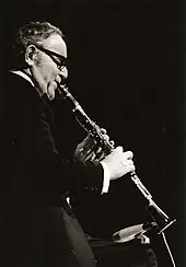 In 1949 he studied with clarinetist Reginald Kell, requiring a change in technique: "instead of holding the mouthpiece between his front teeth and lower lip, as he had done since he first took a clarinet in hand 30 years earlier, Goodman learned to adjust his embouchure to the use of both lips and even to use new fingering techniques. He had his old finger calluses removed and started to learn how to play his clarinet again—almost from scratch."[37]