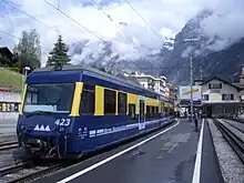The Bernese Oberland Railway (German: Berner Oberland-Bahn, BOB) is a narrow-gauge mountain railway in the Bernese Oberland region of Switzerland. It runs, via a "Y" junction at Zweilütschinen to serve Lauterbrunnen and Grindelwald from Interlaken. The railway is rack assisted (that is although an adhesion railway, rack and pinion operation is used on steep sections of the line to assist traction).[1]