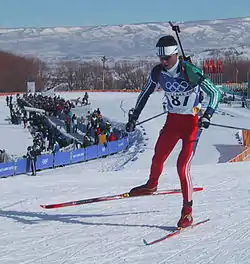 Biathlon at the 2002 Winter Olympics consisted of eight biathlon events. They were held at Soldier Hollow. The events began on 11 February and ended on 20 February 2002.[1] For the first time since 1992, the biathlon program expanded. A new race type, the pursuit (for both men and women) was added, the first new race type since the debut of the sprint in 1980.[2]