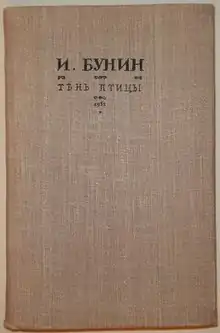 Bird's Shadow (Russian: Тень птицы, romanized: Ten ptitsy) is a collection of short stories by Nobel Prize-winning Russian author Ivan Bunin, inspired by the tour over the Middle East he and wife Vera Muromtseva undertook in the 1900s. Written between 1907 and 1911, these stories came out as a separate edition in Paris in 1931, although most of them had appeared in the Temple of the Sun 1917 compilation.[1] The title refers to the Huma bird; Bunin writes of the view from the Galata Tower that he can see "the entire immense land... on which fell the 'shadow of the Huma Bird' ... the commenters on Saadi explain that this is a legendary bird and that its shadow brings to anyone on which it falls majesty and immortality"[2]