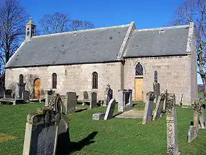 Birnie Parish Kirk is a 12th century parish church located 4 km south of Elgin, in Moray, Scotland. Birnie is one of the oldest churches in continual use in Moray. It is constructed of finely cut freestone ashlar. The building is rectangular in design with a square, short chancel, which is separated from the nave by a rounded chancel arch. The nave was shortened in 1734 when the wall was rebuilt, and the church was later restored in 1891. In the corner of the nave stands a plain, Romanesque style font. The church contains lancet windows in the north and south.[1]