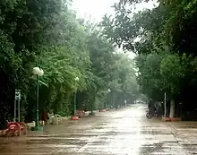 The climate is very dry and mostly very clear. Rainfall is limited to only 128.8 mm per year. Precipitation is quite rare despite some showers usually during the coldest months, mainly January and February, where it rains several times in the season, which brings the majority of humidity to Biskra in a year. The highest precipitation record recorded in Biskra in a year is (600.5 mm) in 1910 while the driest year is only (27.7 mm) recorded in 1945. The extreme heat that prevails during the summer can cause violent storms at the end of it and usually occur in September, when the air humidity becomes significantly higher with an average of 41% moisture per year. The month with the highest air rate in Biskra is December with 59% humidity, July is the least heavy month with only 27% on average per year. Aside from rainfall or humidity, sandstorms can occur several times a month and even become Haboob, which can make visibility almost zero. Biskra has a very good duration of sunshine in the year with an average of 3,292 hours of sunshine a year. The wettest month is November with (20.1 mm), while July is the driest month with (1.7 mm).