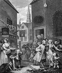 It was reported in the Morning Gazette that there was 30,000 in the country as a whole, though the numbers were thought to be "alarmist" exaggerations. In the same year, a party for black men and women in a Fleet Street pub was sufficiently unusual to be written about in the newspapers. Their presence in the country was striking enough to start heated outbreaks of distaste for colonies of Hottentots.[106] Modern historians estimate, based on parish lists, baptismal and marriage registers as well as criminal and sales contracts, that about 10,000 black people lived in Britain during the 18th century.[107][108][97][109] Other estimates put the number at 15,000.[110][111][112]