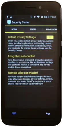 The Blackphone is a smartphone built to ensure privacy, developed by SGP Technologies, a wholly owned subsidiary of Silent Circle. Originally, SGP Technologies was a joint venture between the makers of GeeksPhone and Silent Circle. Marketing is focused upon business users, stressing that employees often conduct business using private devices and services that are not secure and that the Blackphone service readily provides users with options that ensure confidentiality when needed. Blackphone provides Internet access through VPN.[3] The device runs a modified version of Android called SilentOS that comes with a bundle of security-minded tools.[4]