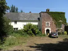 George Kirkham (1525-1581/2), eldest son and heir, who was the builder of the surviving Blagdon manor house, as is evidenced by a datestone inscribed "1567" on the external wall[24] of the great hall. He married Margaret Dennis, a daughter of Sir Thomas Dennis (c. 1477–1561)[25] of Holcombe Burnell, near Exeter in Devon, Sheriff of Devon nine times between 1507/8 to 1553/4 and a Member of Parliament for Devon (apparently a junior branch of Dennis of Orleigh, which used a differenced version of the arms of Dennis of Orleigh). He died without surviving issue, having had a daughter Elizabeth, who died unmarried and was said by Prince to have been a dwarf.[14] His heir was his nephew Sir William Kirkham (died 1623).