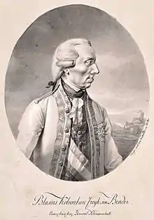 In 1785 Bender was made military commander of Luxembourg and when the Brabant Revolution broke out four years later he was ordered to put it down, since he was already in command of the troops stationed in Luxembourg. In 1790 he was made a field marshal, his final rank, and in November that year he set out from Luxembourg to Brussels with 30,000 men.[3] He managed to recapture Brussels from the rebels, before pacifying the whole Austrian Netherlands in a few weeks, allowing governor-general Albert Casimir, Duke of Teschen to resume his role. As a reward Bender was made a Grand Cross of the Military Order of Maria Theresa.