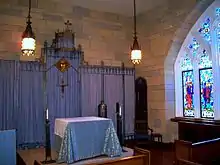 The Blue Chapel, officially consecrated as the Chapel of Most Holy Mary, Mother of Sorrows[2] is a Roman Catholic memorial chapel located in Keating Hall on the Rose Hill campus of Fordham University in the Bronx, New York City. It originally opened in 1937 upon the completion of Keating Hall.