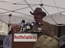 ![]() Durgin speaking at a PACleanSweep protest against the General Assembly payraise | |