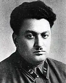 Bogdan Kobulov was born in Tbilisi, the son of an Armenian tailor.[1] He left school early, and was reputedly illiterate. He did odd jobs before being drafted into the Red Army in 1921. He joined Cheka in 1922, and held minor posts, until he was spotted by Beria in 1931 and recruited to the Secret Political department of the OGPU in Georgia. In April 1937, during the Great Purge, he was appointed head of the Secret-Political Department of the Georgian NKVD, which meant that he was in charge of eliminating officers associated with the ex-head of the NKVD, Genrikh Yagoda.[2]
