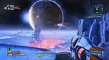 Gameplay in The Pre-Sequel is similar to Borderlands 2, but with the addition of new mechanics. Two varieties of items have been added, including laser guns, and items possessing a cryogenic elemental effect, which can be used to slow down and freeze enemies. Enemies that are frozen take increased damage from explosive, melee or critical attacks and are smashed into pieces when killed. The game features low-gravity environments, causing players to jump higher but slower, and items such as loot and dead bodies to float away. O2 kits are added to supply air while in space; oxygen supplies can be replenished using generators, vents, and through oxygen tank items dropped by enemies. The kits can be used like a jetpack to perform double jumps, hovering, and ground slamming attacks; as with other items, different types of O2 kits can provide stat bonuses and affect how ground slams deal damage.[4][5][6] A new "Grinder" machine allows players to deposit combinations of existing weapons to receive one of higher rarity.[7] Vehicles were introduced, including a Moon buggy, and the "Stingray"—a type of hoverbike.[7]