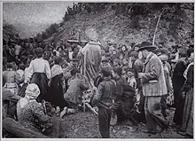 Residents mostly abandoned Boscotrecase.[6] Some residents formed a long procession and brought the statue of Sant'Anna, the patroness of Bosctrecase,[7]: 22 to avert the lava flow. While the Church of Sant'Anna was surrounded by lava, most of Boscotrecase was spared.[7] The flow that aimed at Casavitelli and Annunziatella was diverted by Vallone Izzo, a valley immediately below town. The flow that aimed at Oratorio stopped at a lava stone quarry.