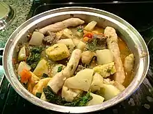 | Main ingredients | Meat, potatoes, plantains, yams, spinach, cabbage, celery, watercress |