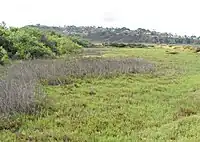 The salinity levels in brackish marshes can range from 0.5 ppt to 35 ppt.[2] Marshes are also characterised by low-growing vegetation and bare mud or sand flats.[3] Due to the variations in salinity, brackish marshes create a distinctive ecosystem where plants from either freshwater or saltwater marshes can co-inhabit.[4] The salinity levels also change with the tides, decreasing at low tide and increasing at high tide as ocean water feeds farther upriver.[5]