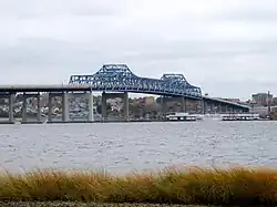 The Charles M. Braga Jr. Memorial Bridge, also known as the Braga Bridge, is a through truss bridge that carries Interstate 195 over the Taunton River between the town of Somerset and the city of Fall River, near the mouth of the Quequechan River at the confluence with Mount Hope Bay. At just over a mile long, it is one of the longest bridges in Massachusetts. Opened to traffic on April 15, 1966,[2] it provides an important link between Providence, Rhode Island, New Bedford, and Cape Cod.