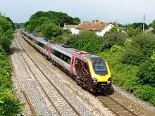 CrossCountry221136 speeds eastwards past the site of Creech St Michael Halt