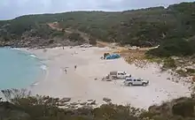 Bremer Bay is known for its beautiful beaches; the main beach is only 10 minutes walk from town. A marina at Fishery Beach offers full boating facilities.[18] The Bremer Marine Park lies offshore. Electricity is generated by a wind-diesel hybrid system.