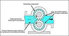Although the fuel itself did not freeze, small quantities of water in the fuel did.[Note 2] Ice adhered to the inside of the fuel lines, probably where they ran through the pylons attaching the engines to the wings.[4](p155) This accumulation of ice had no effect on the flight until the final stages of the approach into Heathrow, when increased fuel flow and higher temperatures suddenly released it back into the fuel.[4](p155) This formed a slush of soft ice that flowed forward until it reached the fuel/oil heat exchangers (FOHEs)[Note 3] where it froze once again, causing a restriction in the flow of fuel to the engines.[4](p155)[4](p149)